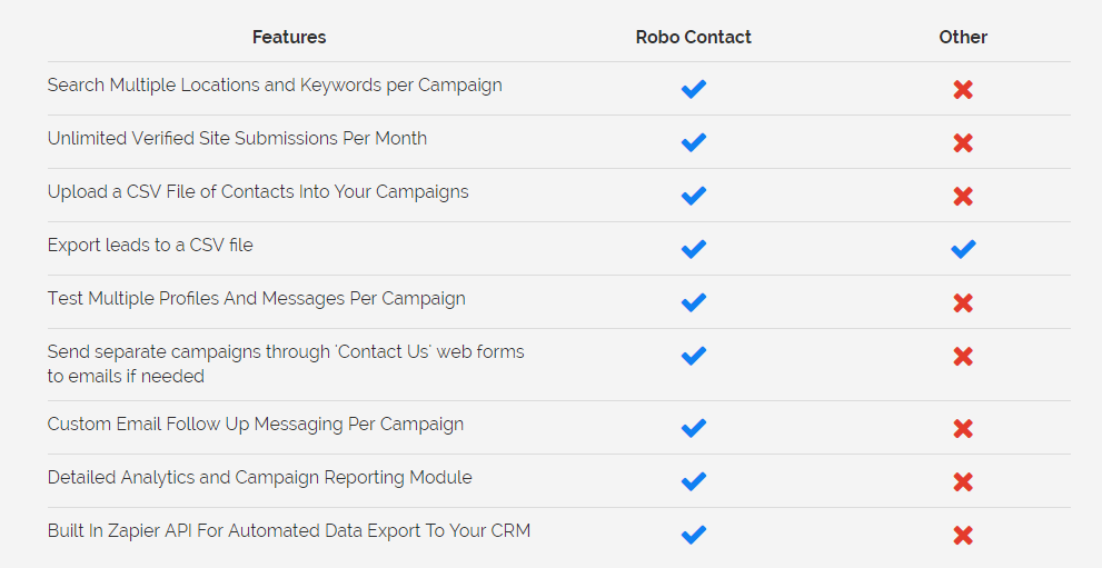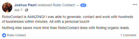 Instead of manually filling out 100s of contact forms yourself, Robo Contact will almost guarantee that your lead sees your message by fill out the form for you. Robo Contact will also search the lead's website and compile their address, email, phone number, and social links.